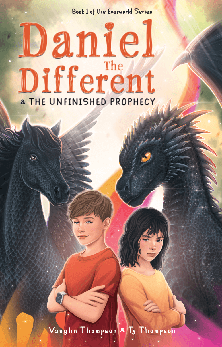 One of the newest middle grade fantasy novels and debut book by authors Vaughn Thompson and Ty Thompson, this book is perfect for ages 9-14. Action, adventure, friendship with an immersive world at the backdrop, this is the first book in a the Everworld Series: Daniel the Different & the Unfinished Prophecy. Now available on Amazon.com